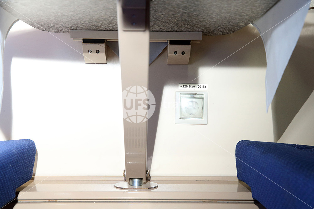 Интерьер выполнен в спокойных фиолетово-бордово-бежевых тонах. Срок службы новых вагонов, вошедших в состав поезда, не превышает 12 лет.