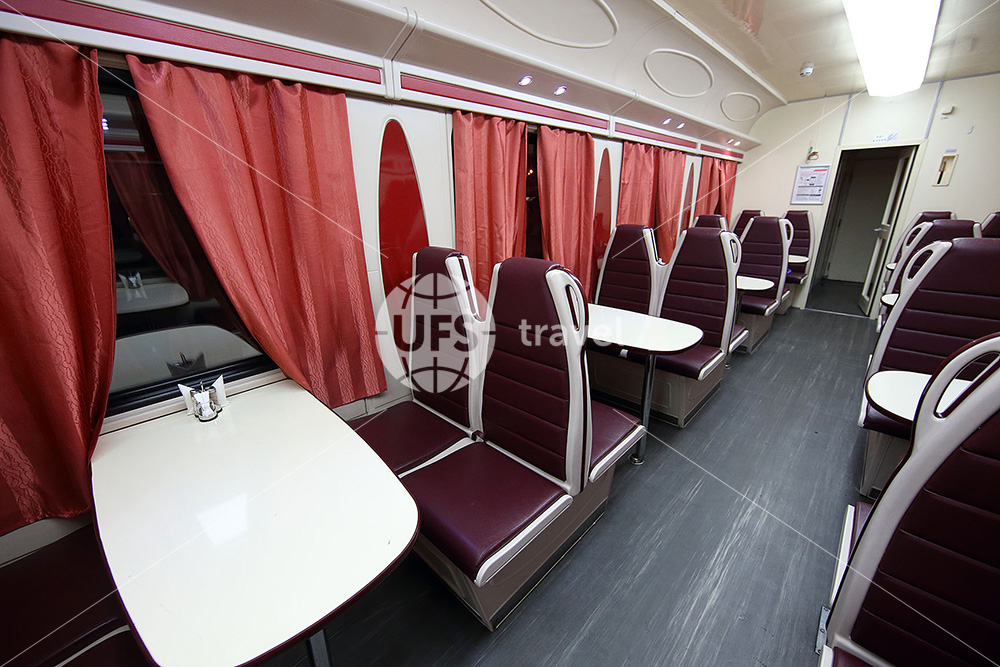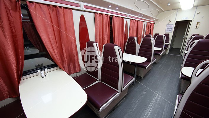 В вагоне-ресторане можно поужинать, а также просто посидеть с чашкой кофе и десертом. По отдельному заказу повара готовят детские блюда. Пассажиры могут заказать ужин в купе.